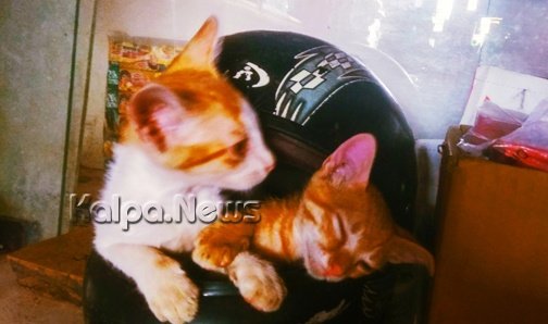 ಸ್ನೇಹ ಸಮ್ಮಿಲನ ಪ್ರತಿನಿತ್ಯ ಹೀಗೆಯೇ… ಒಂದೇ ಹೆಲ್ಮಟ್ನಲ್ಲಿ ನಿದ್ದೆಗೆ ಜಾರುತ್ತವೆ. ರಾಣಿ ಬೆಕ್ಕಿನ ಎರಡು ಗಂಡು ಮರಿಗಳು ಇವಾಗಿದ್ದು, ಎರಡು ಮರಿಗಳಿಗೂ ರಾಜ ಎಂದು ಹೆಸರು ಇಟ್ಟಿದ್ದಾರೆ.