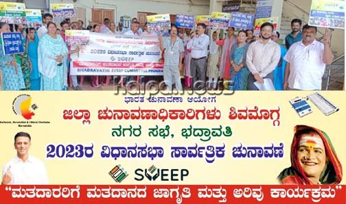ರಾಜ್ಯ ವಿಧಾನಸಭಾ ಚುನಾವಣೆಯ ಹಿನ್ನೆಲೆಯಲ್ಲಿ ನಗರಸಭೆ ವತಿಯಿಂದ ಮತದಾನದ ಜಾಗೃತಿ ಮತ್ತು ಅರಿವು ಮೂಡಿಸುವ ಕಾರ್ಯಕ್ರಮಕ್ಕೆ ಚಾಲನೆ ನೀಡಲಾಯಿತು.