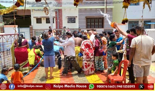 ಓಕಳಿಗೆ ಹರಿಶಿನ, ಕುಂಕುಮ, ಶ್ರೀಗಂಧ ,ಹಾಗೂ ಪರಿಮಳ ಯುಕ್ತ ವಿಶೇಷ ಹೂಗಳಿಂದ ಪುಷ್ಪ ಮತ್ತು ಎಲೆಗಳಿಂದ ತಯಾರಿಸಲ್ಪಟ್ಟ ರಸಗಳನ್ನು ಓಕಳಿಗೆ ಸಾಂಪ್ರದಾಯಕವಾಗಿ ಬಳಸಿ ಓಕಳಿ ನಡೆಸುವುದು ಇಲ್ಲಿಯ ವಿಶೇಷವಾಗಿದೆ. ಓಕಳಿಯ ವಿಶೇಷ ಪ್ರಾರ್ಥನೆ ನಂತರ ಶಂಕರ ಪುರಂ ನ ಮನೆಗಳ ಮುಂಭಾಗದಲ್ಲಿ ಗಂಗಾ ಪೂಜೆಯನ್ನು ನೆರವೇರಿಸಿ ಪರಸ್ಪರ ನೀರನ್ನು ಹಾಕುವ ಮೂಲಕ ಬಾಲಕರಿಂದ ವೃದ್ಧರವರೆಗೂ ನೂರಾರು ಜನರು ಭಾಗವಹಿಸಿದ್ದರು .