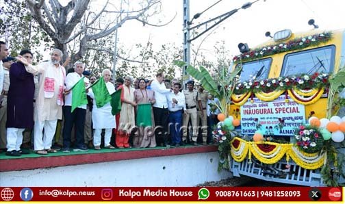 ಕೇಂದ್ರ ರೈಲ್ವೆ ಹಾಗೂ ಜಲಶಕ್ತಿ ರಾಜ್ಯ ಸಚಿವ ವಿ. ಸೋಮಣ್ಣ #Union Minister Somanna ಅವರು ಇಂದು ದಾಂಡೇಲಿಯಲ್ಲಿ ದಾಂಡೇಲಿ – ಆಳ್ನಾವರ ನಡುವಿನ ಹೊಸ ಡೆಮು (DEMU) ಪ್ರಯಾಣಿಕ ರೈಲು ಸೇವೆಯನ್ನು #DEMU train service between Dandeli – Alnavara ಹಸಿರು ನಿಶಾನೆ ತೋರಿಸುವ ಮೂಲಕ ಚಾಲನೆ ನೀಡಿದರು. ಈ ಮೂಲಕ ಈ ಭಾಗದ ಪ್ರಯಾಣಿಕರ ರೈಲು ಸಂಪರ್ಕವನ್ನು ಮರುಸ್ಥಾಪಿಸಲಾಗಿದೆ.