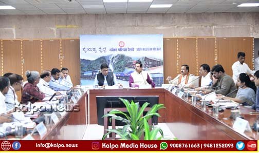 ನೈಋತ್ಯ ರೈಲ್ವೆಯ ಕೇಂದ್ರ ಕಚೇರಿ ರೈಲ್ ಸೌಧದಲ್ಲಿ ನೈಋತ್ಯ ರೈಲ್ವೆಯ ಪ್ರಧಾನ ವ್ಯವಸ್ಥಾಪಕ ಮುಕುಲ್ ಸರನ್ ಮಾಥುರರೊಂದಿಗೆ ಚಾಲ್ತಿಯಲ್ಲಿರುವ ಹಾಗೂ ಪ್ರಸ್ತಾವಿತ ರೈಲ್ವೆ ಯೋಜನೆಗಳ ಪರಿಶೀಲನಾ ಸಭೆಯನ್ನು ನಡೆಸಿದರು.