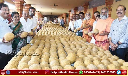 ಈ ಪ್ರಸಾದ ಪರಂಪರೆ 1994ರಲ್ಲಿ ಕೇವಲ ಸಾವಿರ ಲಡ್ಡುಗಳಿಂದ ಆರಂಭವಾದುದು. ನಂತರ ವರ್ಷದಿಂದ ವರ್ಷಕ್ಕೆ ವಿಸ್ತರಿಸುತ್ತಾ, ಕಳೆದ ಹಲವು ವರ್ಷಗಳಿಂದ ಒಂದು ಲಕ್ಷಕ್ಕೂ ಅಧಿಕ ಲಡ್ಡುಗಳನ್ನು ವಿತರಿಸಲಾಗುತ್ತಿದೆ. ಈ ವರ್ಷ ಮೊದಲ ಬಾರಿಗೆ ಎರಡು ಲಕ್ಷ ಲಡ್ಡುಗಳನ್ನು ಭಕ್ತಾದಿಗಳಿಗೆ ನೀಡಲು ದೇವಾಲಯ ಸಕಲ ಸಿದ್ಧತೆ ಮಾಡಿಕೊಂಡಿದೆ. ಸುಮಾರು 2 ಕಿಲೋಗ್ರಾಂ ತೂಕದ 15,000 ಲಡ್ಡುಗಳು ಹಾಗೂ 150 ಗ್ರಾಂ ತೂಕದ 2 ಲಕ್ಷ ಲಡ್ಡುಗಳನ್ನು ವಿತರಿಸಲಾಗುವುದು.