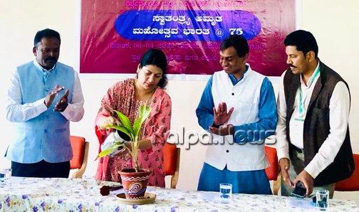 ಸ್ವಾತಂತ್ರ್ಯ ಅಮೃತ ಮಹೋತ್ಸವ ಅಂಗವಾಗಿ ವಿಶ್ವವಿದ್ಯಾಲಯ ನಗರ ಕಛೇರಿಯಲ್ಲಿ ಆಯೋಜಿಸಲಾಗಿದ್ದ ವಿಶ್ವವಿದ್ಯಾಲಯ ಮಟ್ಟದ ಒಂದು ದಿನದ ಕಾರ್ಯಾಗಾರವನ್ನು ಗಿಡಕ್ಕೆ ನೀರೆರೆಯುವ ಮೂಲಕ ಉದ್ಘಾಟಿಸಿ ಅವರು ಮಾತನಾಡಿದರು.