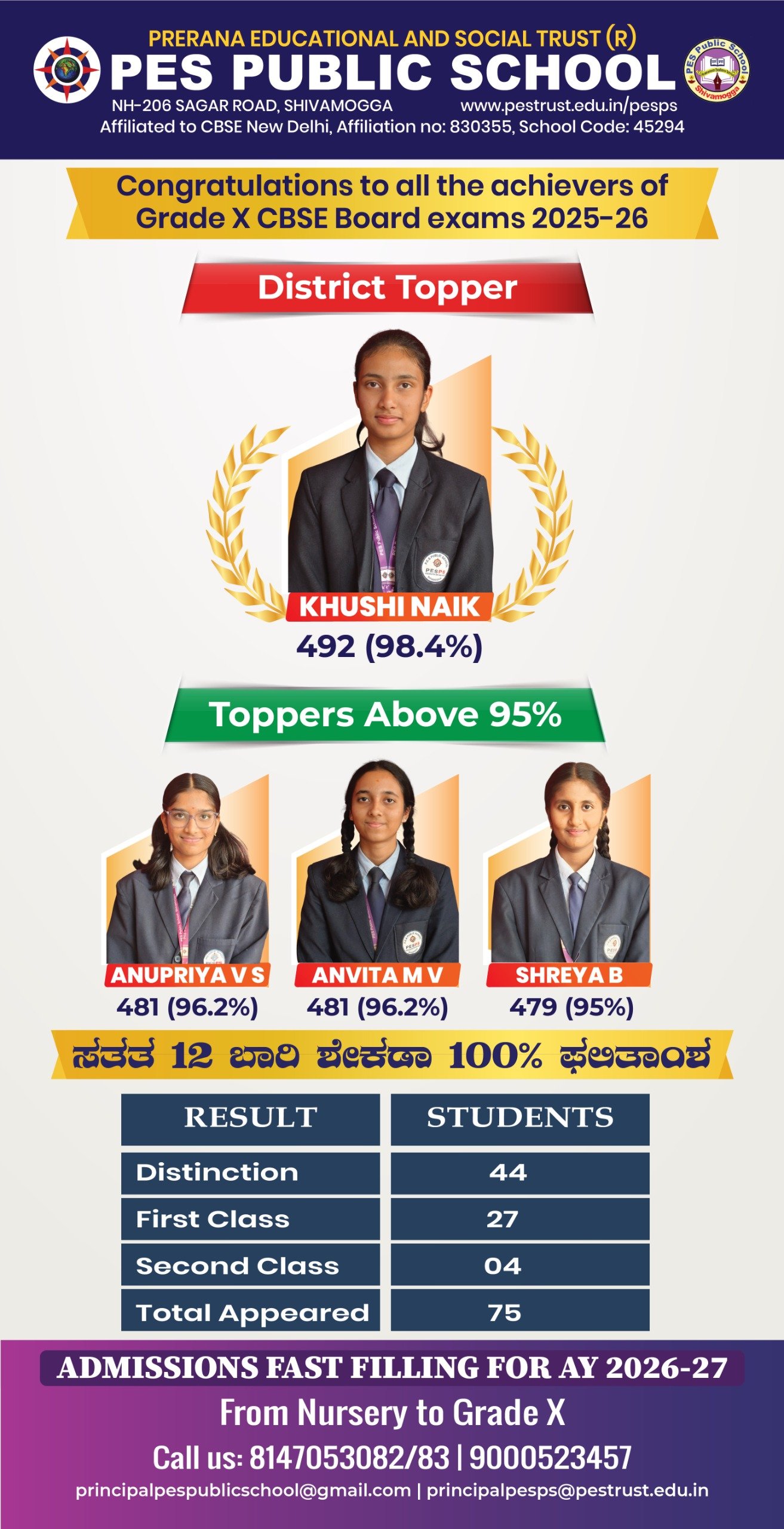ಶಿವಮೊಗ್ಗದ ಎನ್‌ಪಿಎಸ್‌ ಸಾಧನೆ | ಸಿಬಿಎಸ್ಇ 10ನೇ ತರಗತಿಯಲ್ಲಿ 100% ಫಲಿತಾಂಶ