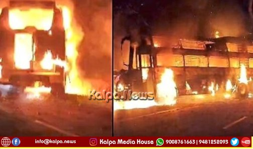 ಖಾಸಗಿ #PrivateBus ಸ್ಲೀಪರ್ ಬಸ್’ವೊಂದರಲ್ಲಿ ಏಕಾಏಕಿ ಬೆಂಕಿ ಕಾಣಿಸಿಕೊಂಡಿದ್ದು, ಕೆಲವೇ ಕ್ಷಣಗಳಲ್ಲಿ ಇಡೀ ಬಸ್ ಧಗಧಗನೆ ಹೊತ್ತಿ ಉರಿದಿರುವ ಘಟನೆ ಜಿಲ್ಲೆಯ ರಿಪ್ಪನ್’ಪೇಟೆ ಬಳಿಯಲ್ಲಿ ನಿನ್ನೆ ತಡರಾತ್ರಿ ನಡೆದಿದೆ.